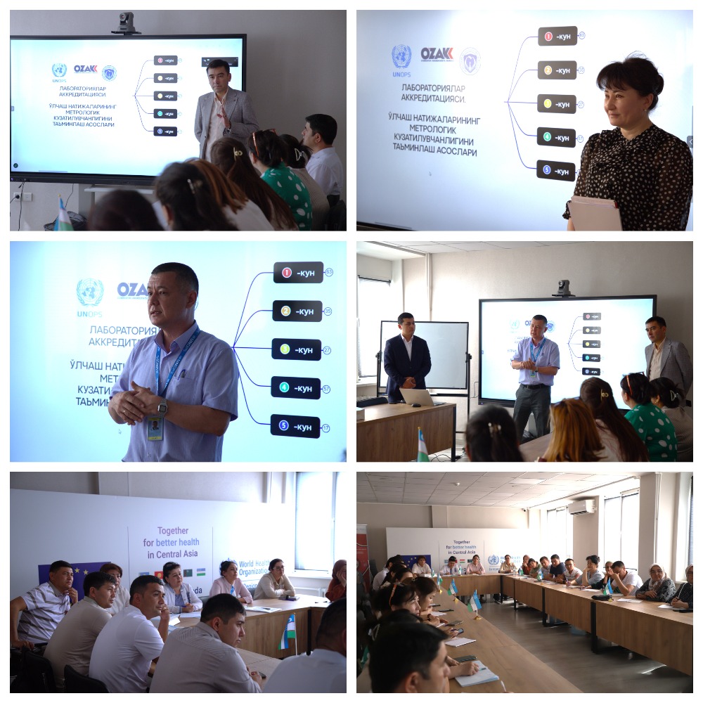 Trening UNOPS tashkiloti va Sanitariya-epidemiologik osoyishtalik va jamoat salomatligi sohasida kadrlarni qayta tayyorlash va ularning malakasini oshirish markazi tomonidan laboratoriya jamoalarini metrologik kuzatuvchanlikni ta’minlash, kalibrovka, uskunalarni verifikatsiya qilish, o‘lchash noaniqliklarini baholash, metodlarni validatsiya va verifikatsiya qilish hamda xalqaro ILAC standartlariga muvofiq qaror qabul qilish qoidalari asosida sinov hisobotlarini tayyorlash kabi zarur bilim va ko‘nikmalar bilan ta’minlash maqsadida tashkil etildi.